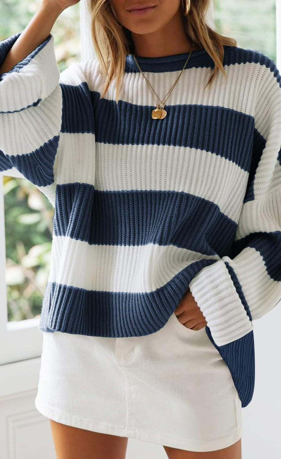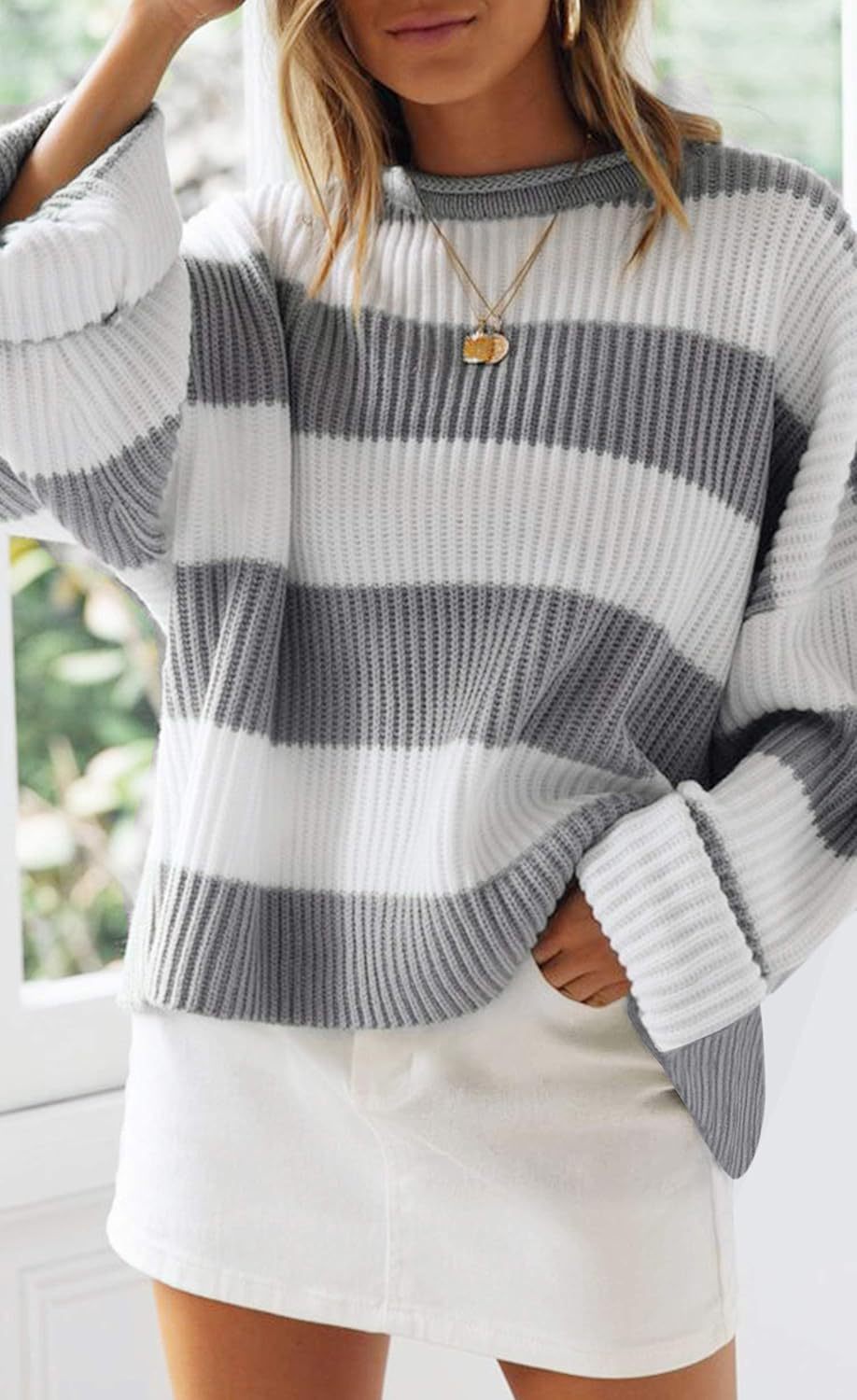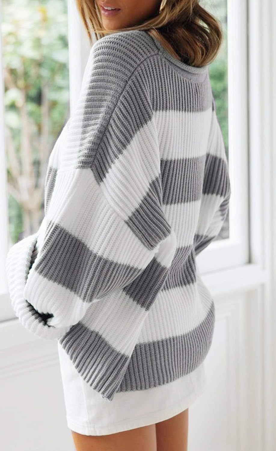 Women's Bell Sleeve Loose Sweater Striped